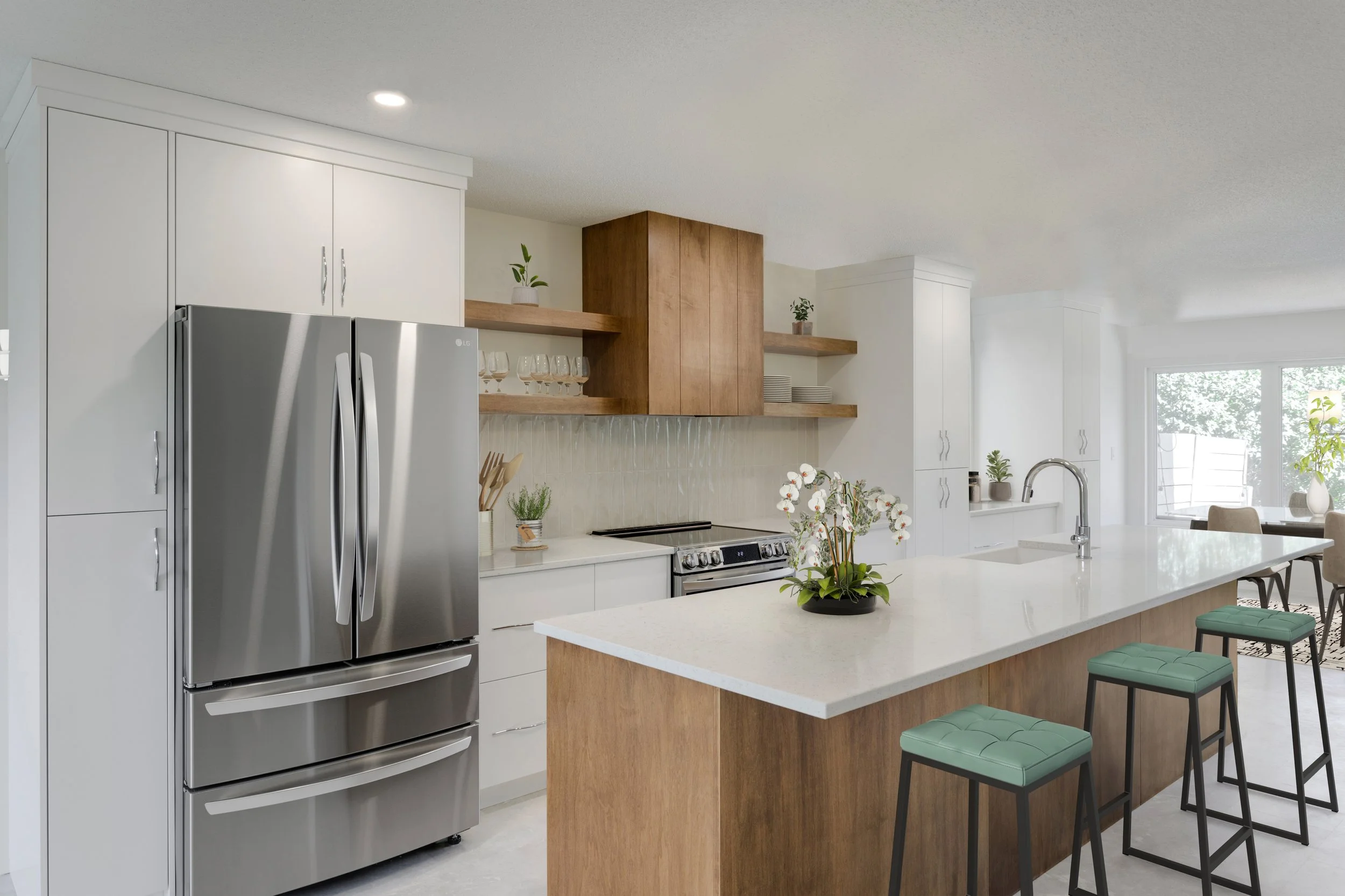 A mix of closed cabinetry and open shelving is a big trend this year. Glass-front cabinets and open shelving units create a lighter, airier feel while allowing homeowners to display decorative pieces, fine china, or everyday essentials with style.